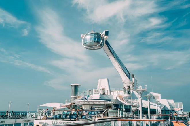 陈嫣看中这条航线旅行时间长、停靠城市多、船上娱乐丰富。诸多游乐设施中,最吸引她和丈夫的,是能将乘客抬举到甲板上空100米的摇臂缆车“北极星”。