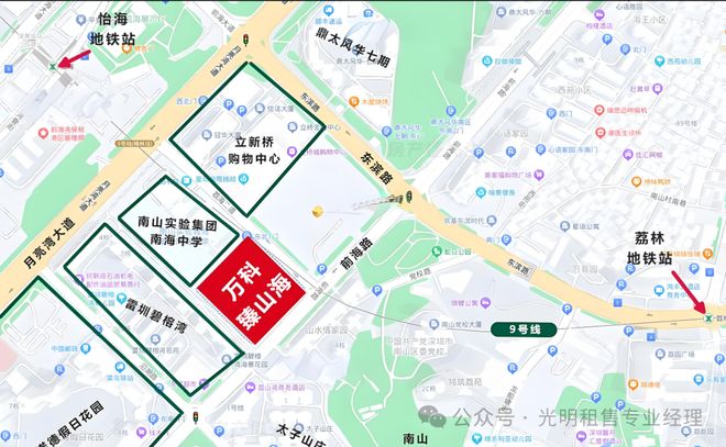 万科臻山海位于南山前海路和荔海二道交汇处西南侧,西边紧靠着南海中学,高层可看前海景观,东南向看南山,周边多是成熟住宅小区,居住氛围较好