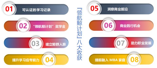 :通过参加“领航鲸计划”建立考生“鲸群”人脉资源,也为入校后MBA学联和俱乐部、班委等储备人才。