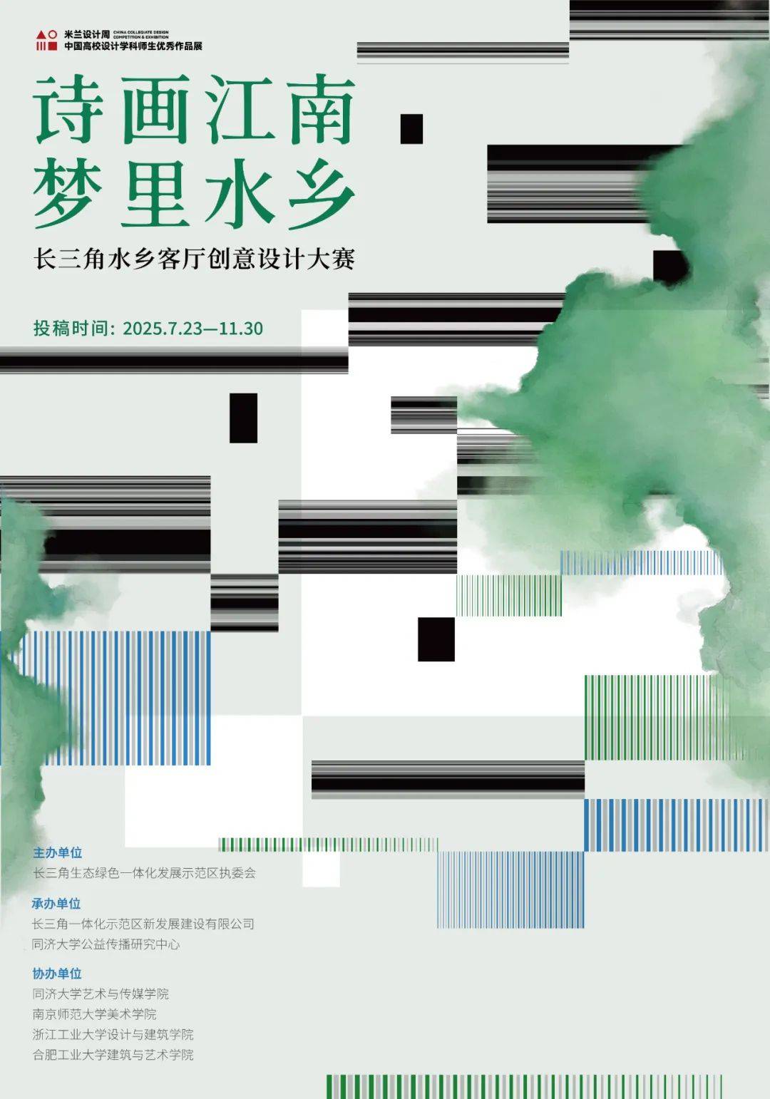 据悉,长三角水乡客厅创意设计大赛征集水乡客厅标志设计、水乡驿站概念设计两个类别作品,广邀全国设计领域专家、学者、高校学子参与,优秀作品有望在水乡客厅落地,成为的水乡客厅生态空间和文化空间的一部分,大赛也将成为长三角共商、共建、共享、共赢的实际行动之一。征稿活动在米兰设计周—中国高校设计学科师生优秀作品展官网()进行,面向全社会开放。