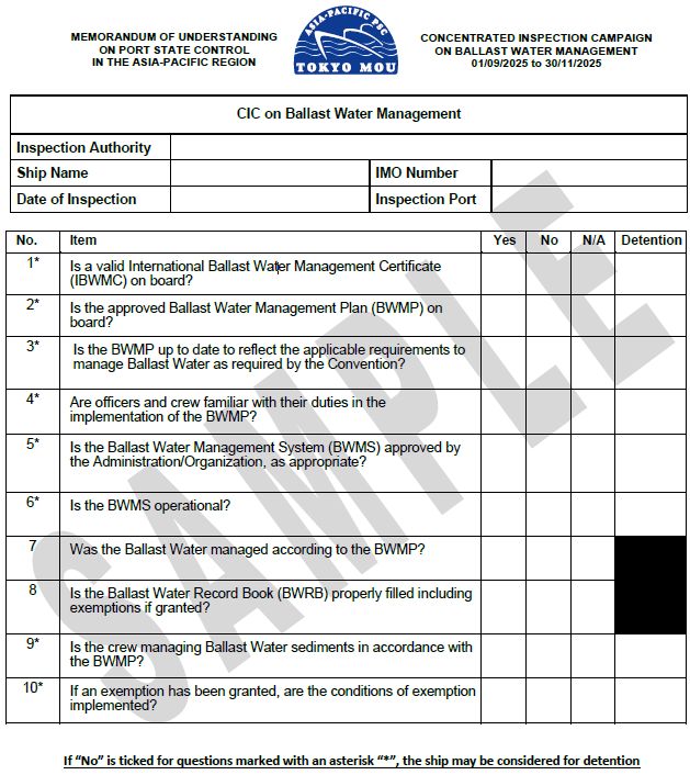 东京备忘录(Tokyo MoU)与巴黎备忘录(Paris MoU)的成员机构将于2025年9月1日至11月30日,开展为期三个月的压载水管理联合集中检查活动(CIC)。